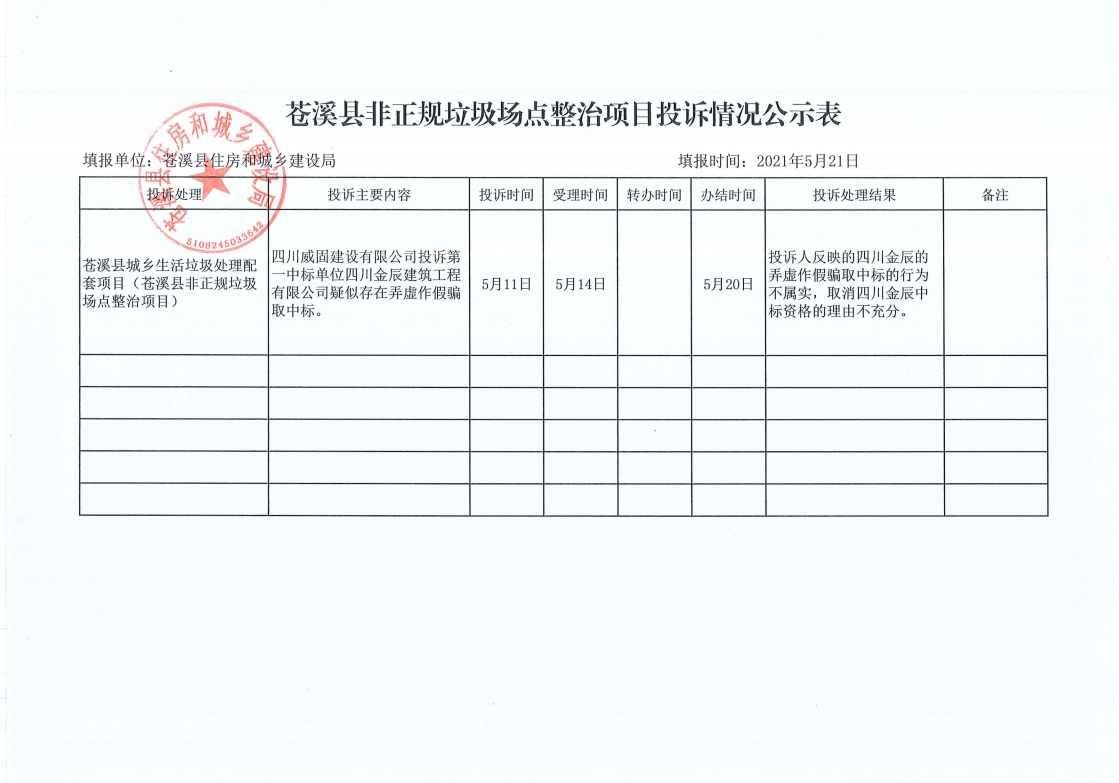 蒼溪縣非正規(guī)垃圾場點整治項目投訴情況公示
